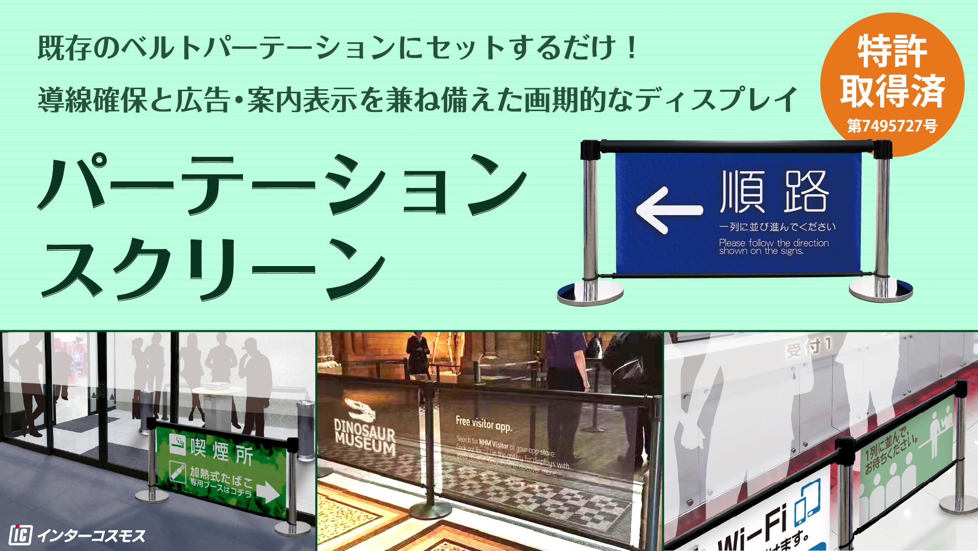 既存のベルトパーテーションポールに取り付けるだけ!【パーテーションスクリーン】が特許を取得いたしました。