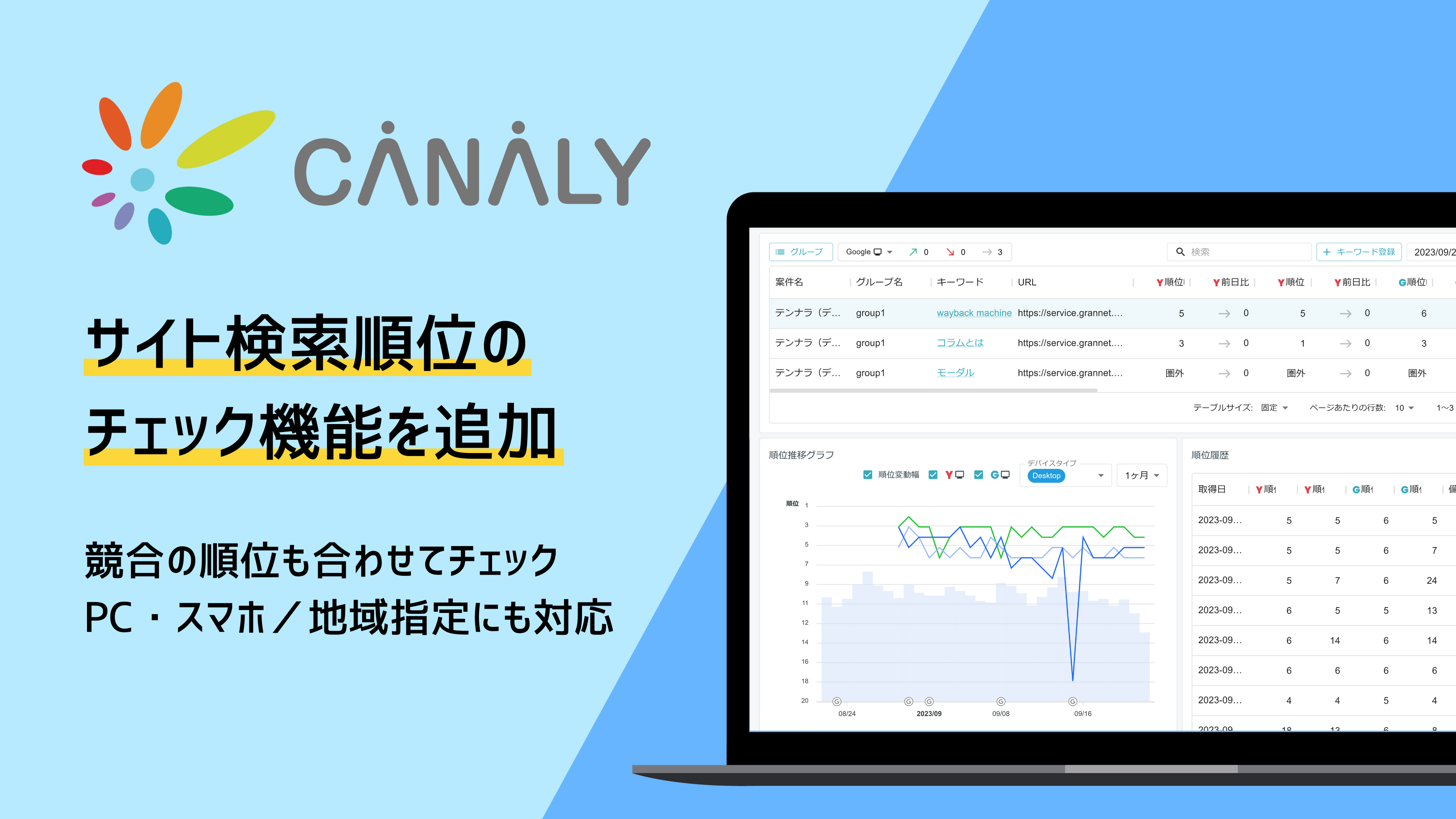 毎日の検索順位のチェックができる新機能をリリース:初心者でもカンタンに使えるSEOツール「CANALY」