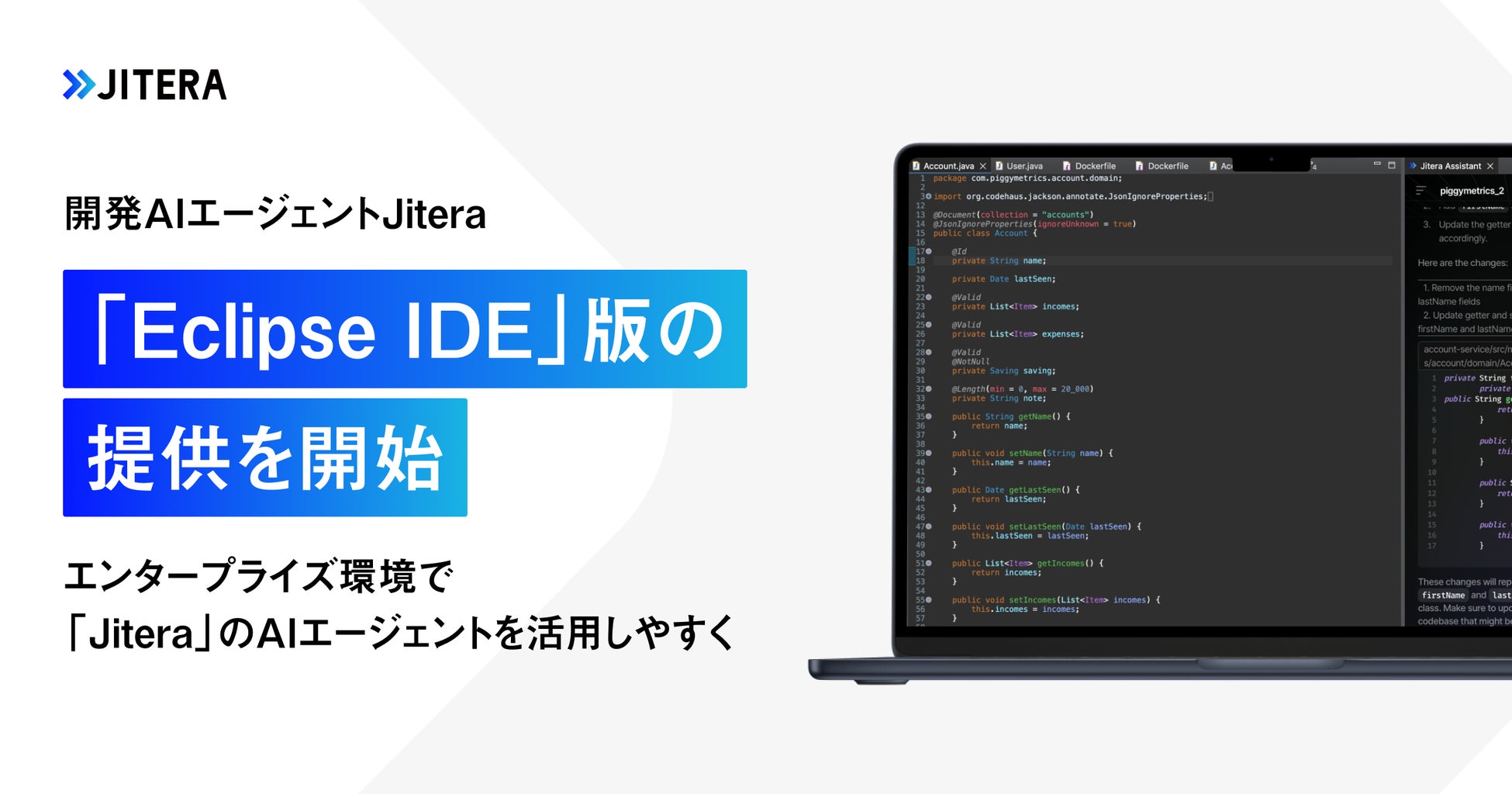 株式会社Jitera(本社:東京都港区、代表取締役:栁澤 直、以下「当社」)の提供する開発AIエージェント「Jitera」は、新たに「Eclipse(イクリプス) IDE 版」の提供を開始しました。