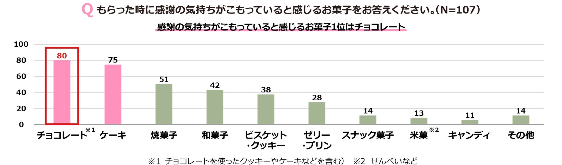 感謝の気持ちがこもっていると感じるお菓子1位はチョコレート。