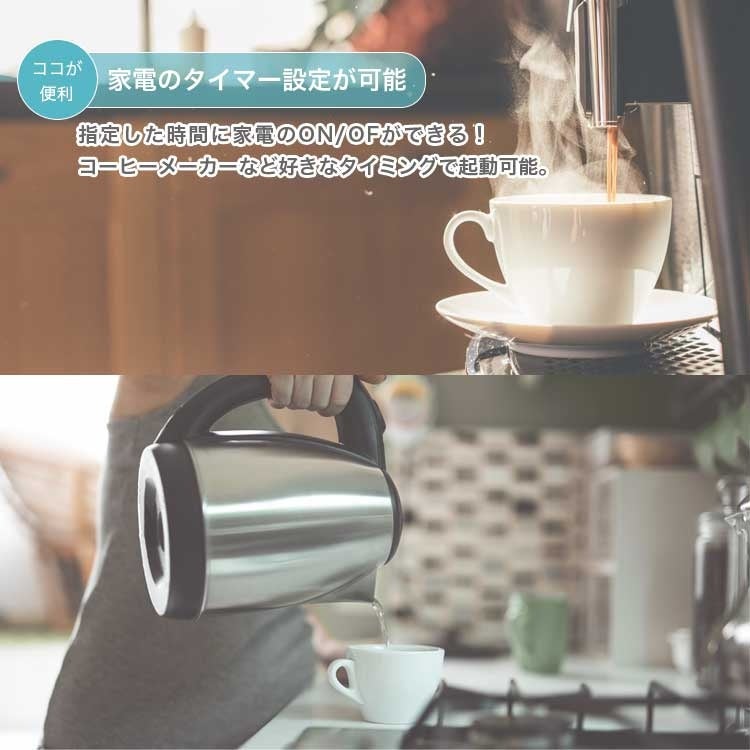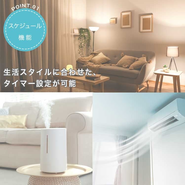 タイマー設定を使い、起床時・就寝時・夕方などお好みの時間にオンオフ切り替えを自動化。