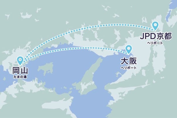 区間①:「JPD京都ヘリポート」⇆「岡山・瀬戸内温泉たまの湯場外離発着場」