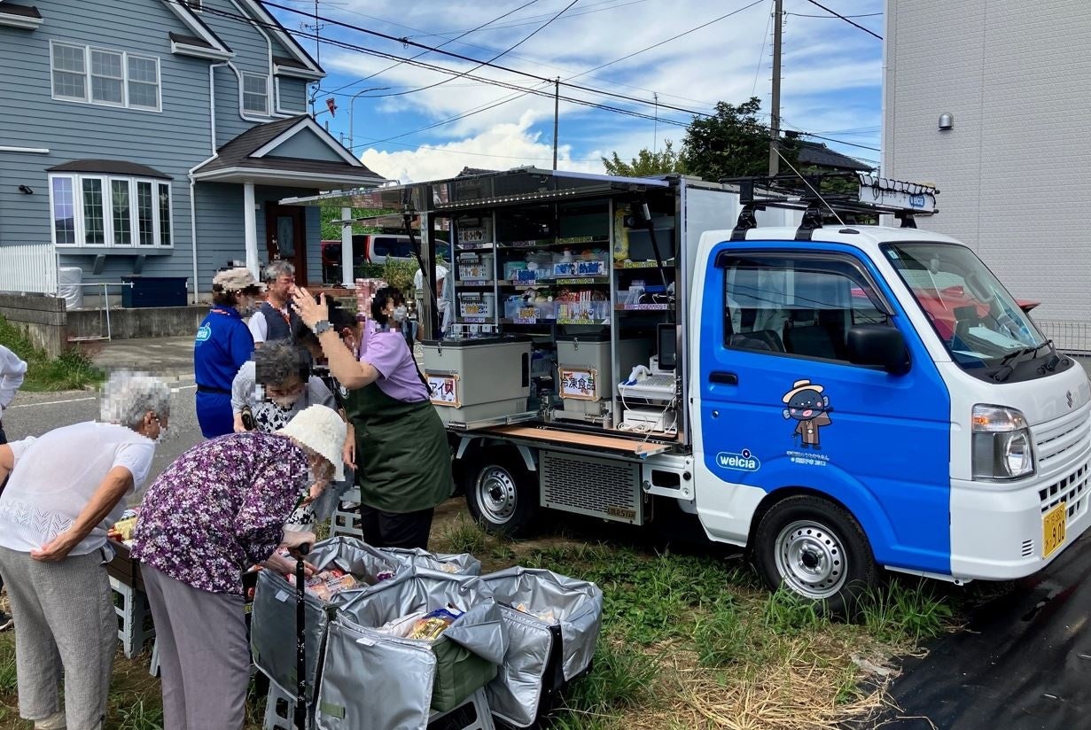 食品・生活日用品に加え、化粧品や第一類医薬品を含む一般用医薬品(要事前注文)を販売しています。社会課題の一つである買い物支援を通じ地域コミュニティづくりを目的とし、自治体と協定を締結して移動販売車を巡行しています。各販売場所が集いの場となり高齢者の外出機会を促進しています。ドライバーはもちろん地域住民よる自主的な見守り機能も担い、オンラインを活用し、地域に住み続けながらにして薬剤師、看護師による健康相談や医薬品販売を受ける事ができ、健康増進に寄与しています。