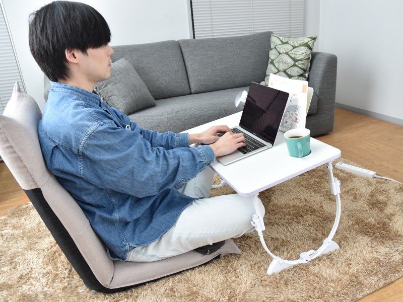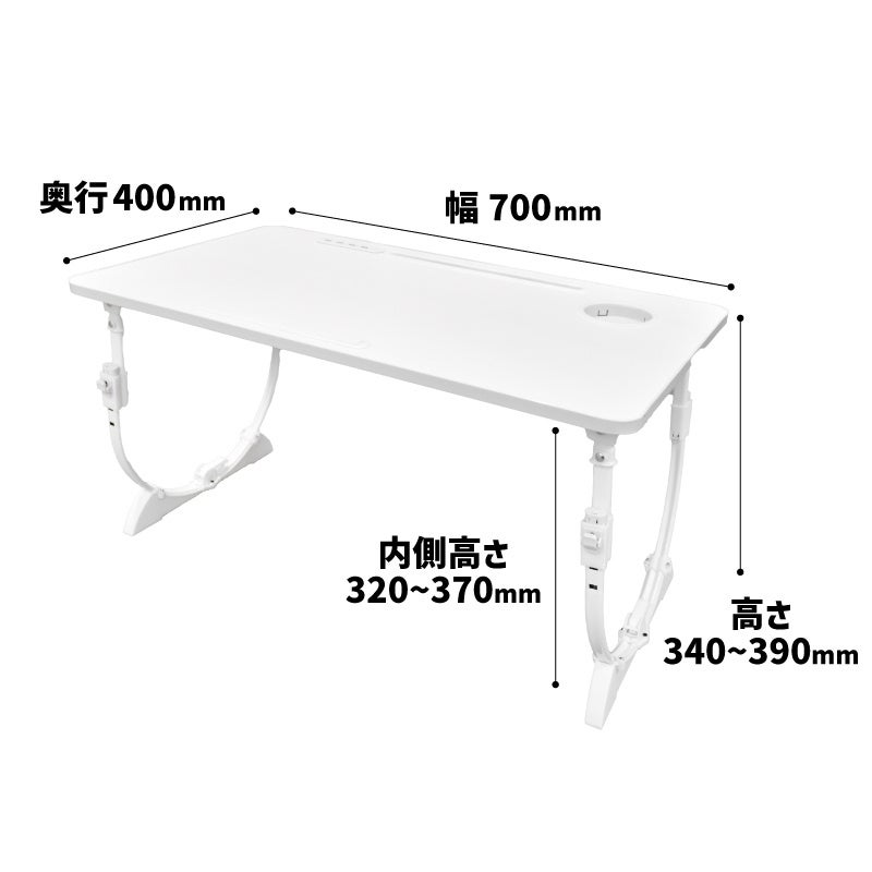 幅70×奥行40cm。高さ3段階調整。角度無段階調整(最大50度まで)。テーブル下は最大37cmあり大柄な男性でもあぐらがかけ、楽な姿勢で作業ができます。