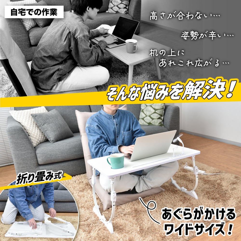 ローテーブルの高さが低くて、使いづらい、パソコン作業がしにくい。ベッドの上で使えるテーブルが欲しい。そんな方におすすめの「高さ&角度調整ができる多機能ワイドローテーブル」です。