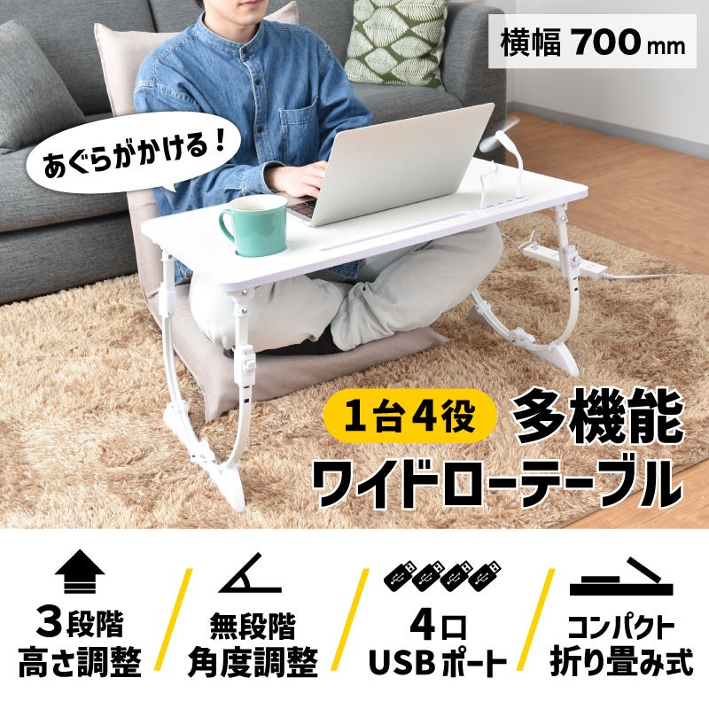 楽な高さで作業ができる角度と高さが調整できるUSB付幅70cmのワイドローテーブル