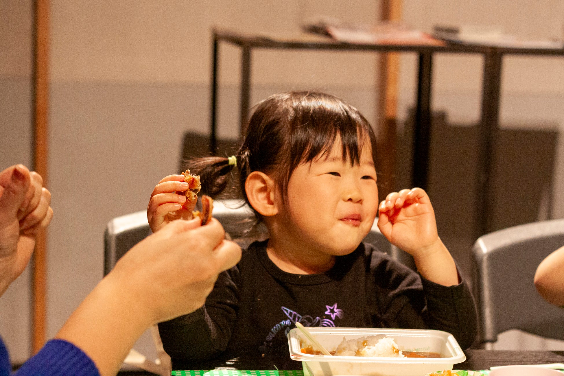 また、発表会後には、「こどもふるさと便」を通じて寄付される食材を活用したカレーをふるまう「こども食堂」も実施。来場した親子や地域住民とともに、「こどもふるさと便」を通じた応援のかたちを体感するあたたかな交流の場となりました。