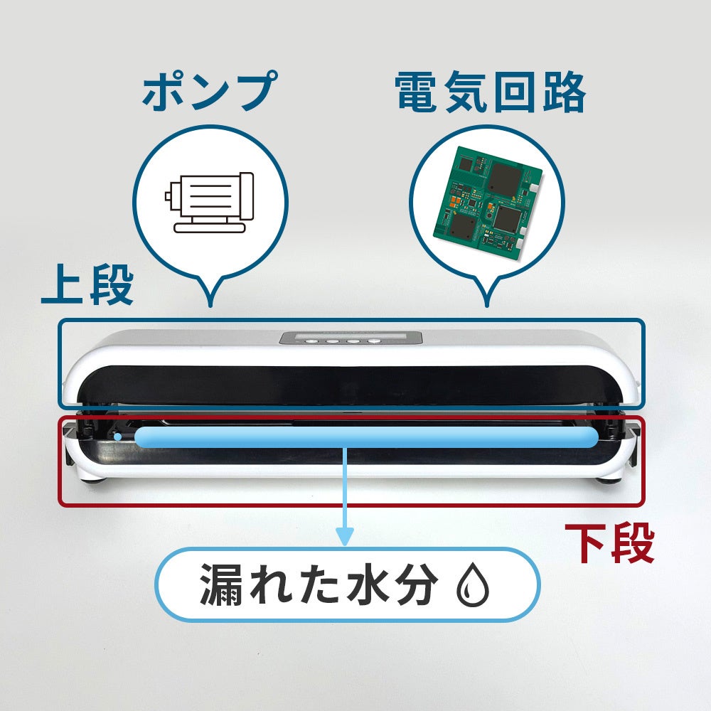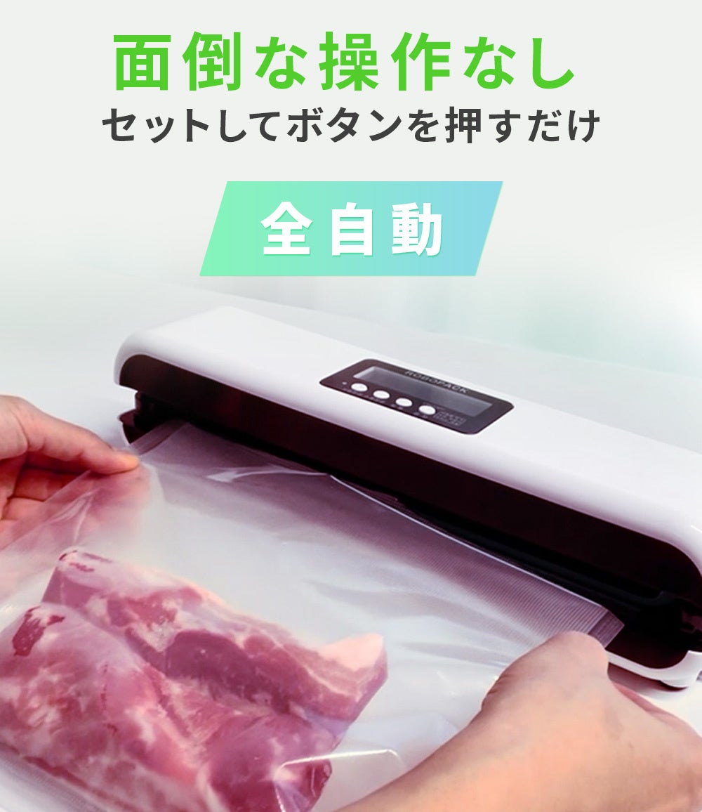 「吸引からシーリングまで全自動!水気で破損しにくい構造の食品用真空パック機」