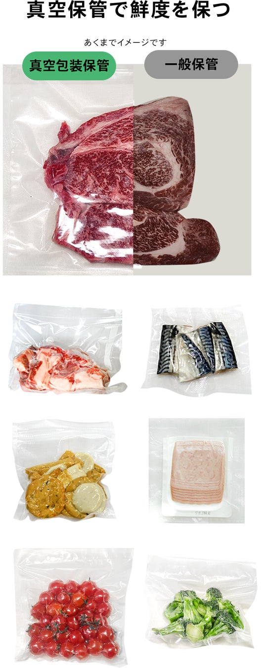 専用真空パックはエンボス式の真空パックが利用可能です。