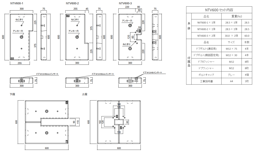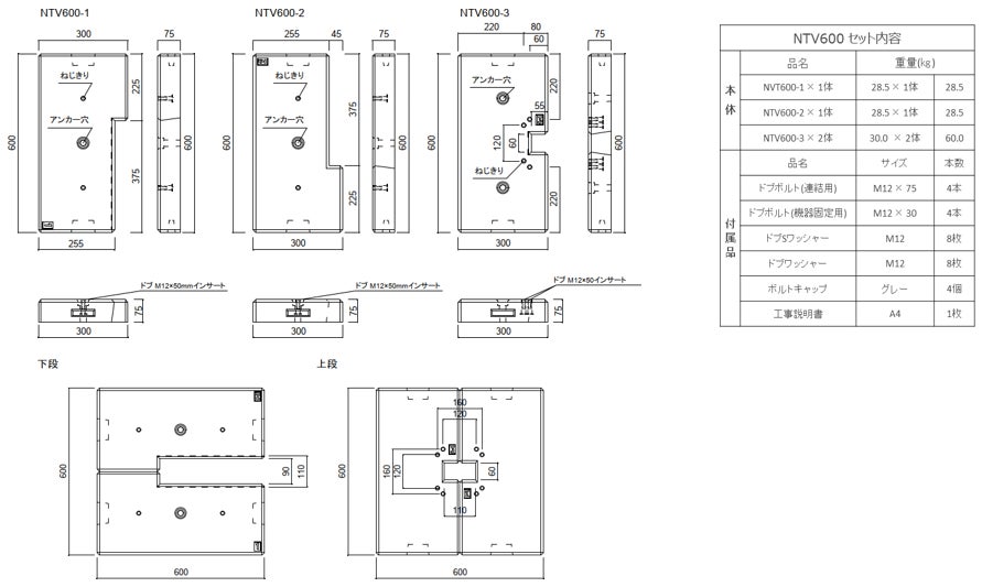 こうした市場の課題を解決するため、南海電設、日東工業、東洋ベースの三社のノウハウを結集し、安全で且つ、省コスト、省施工で基礎工事が行える置き基礎「NTV600」を開発 。従来の基礎工事の課題を解決する高い施工性と信頼性が評価され、この度、累計出荷台数 300 台を突破いたしました。