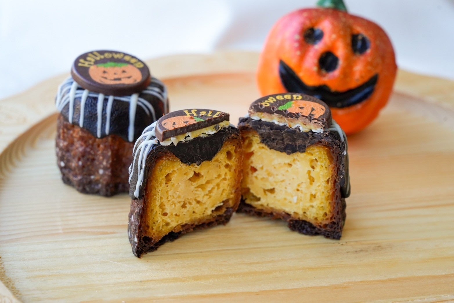 「ハロウィンカヌレ」は、生地に北海道産の「えびすかぼちゃ」をふんだんに使用した、ハロウィンらしさを感じていただけるカヌレです。