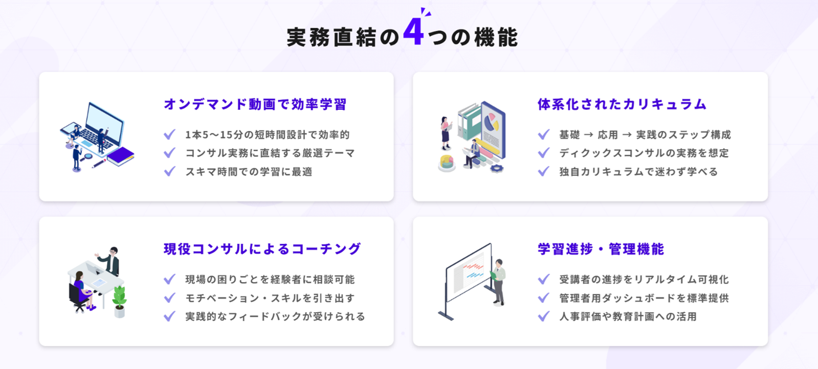 【特徴①】実務直結の4つの機能
