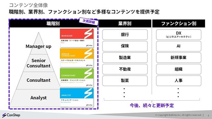 今後、Ballistaは「ConStep」を通じて、企業内におけるコンサルティング機能の内製化と高度化を支援していきます。