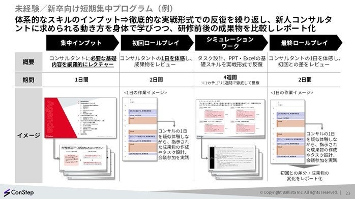 ConStepを活用した未経験者/新卒向け集中講義プログラムも提供しています。