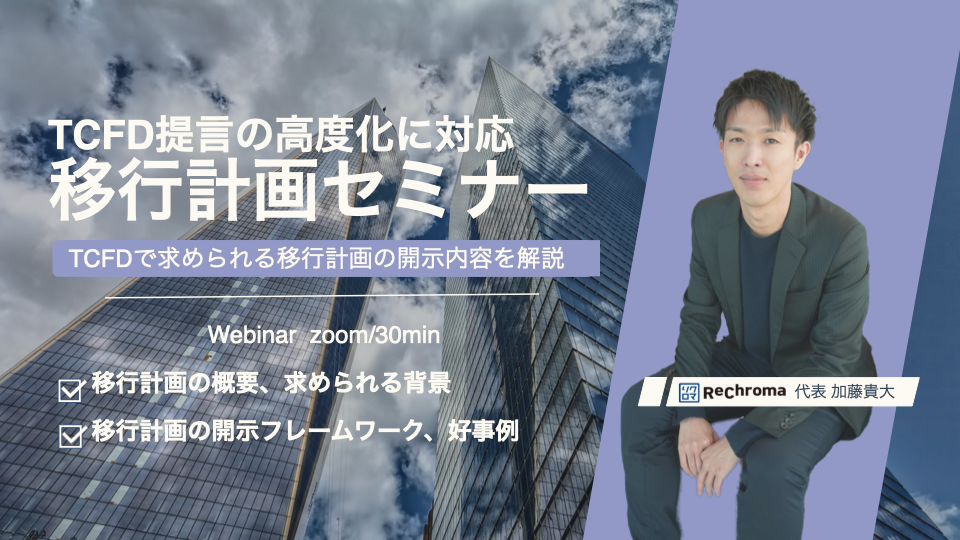 【9月26日 リアルタイムセミナー開催】TCFD開示の高度化に対応 移行計画セミナー