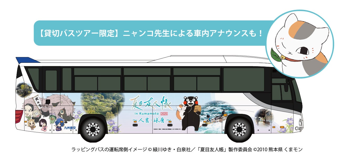 九州産交グループ(所在地:熊本市中央区新市街/九州産業交通ホールディングス株式会社 代表取締役社長:岩間 雄二)は2025年8月8日(金)より展開する、TVアニメ「夏目友人帳」とコラボレーションした熊本地域応援プロジェクトの一環として、ラッピングバスで行く貸切バスツアーを催行いたします。