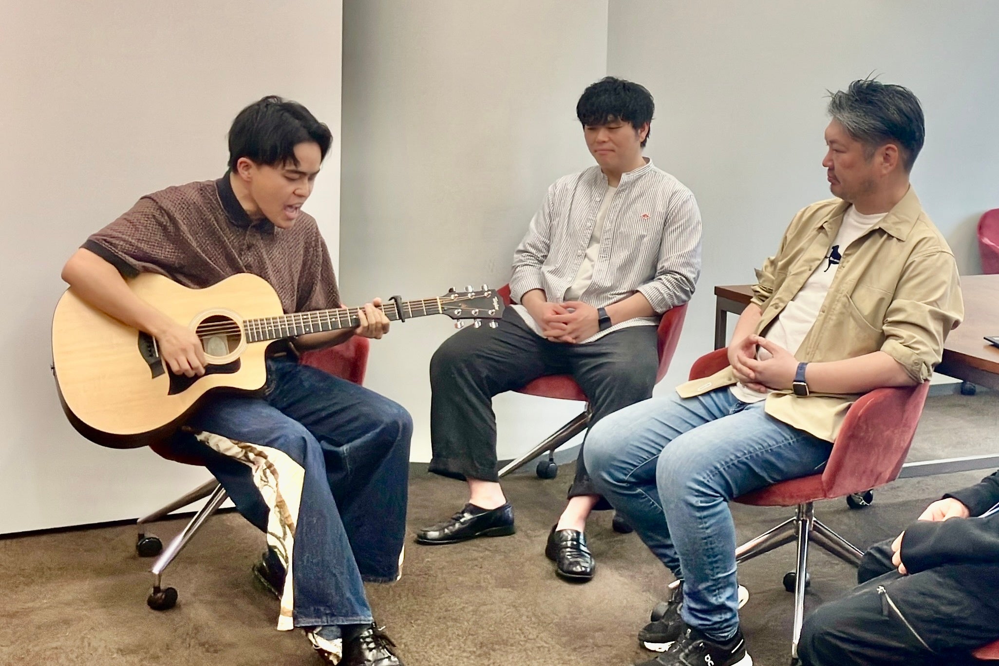 昨年の選考では、最終面接で候補者が実際に弾き語りを披露する場面も。実技演奏を通して候補者のスキルや音楽への向き合い方のみならず、個性や人柄を読み取れる貴重な機会となりました。(実技演奏は任意です)
