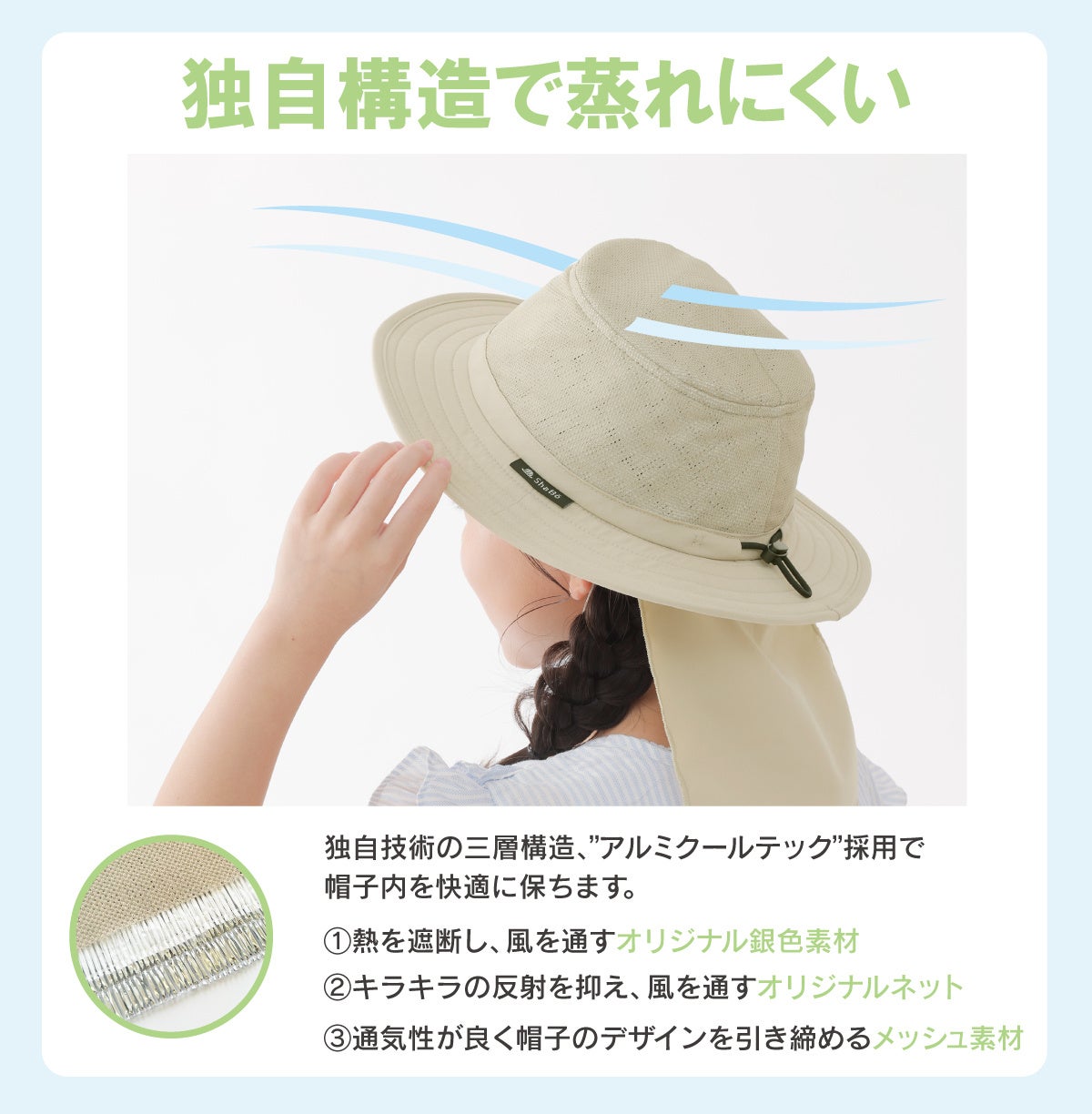●帽子内側に高遮熱&高通気オリジナル素材「ShaBo アルミクールテック」を使用