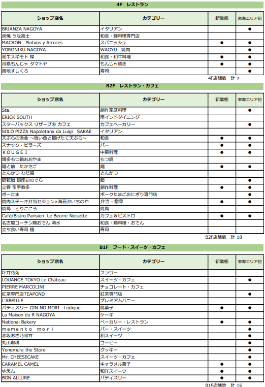 【 東海エリア初出店:40店舗 / 新業態:16店舗 】