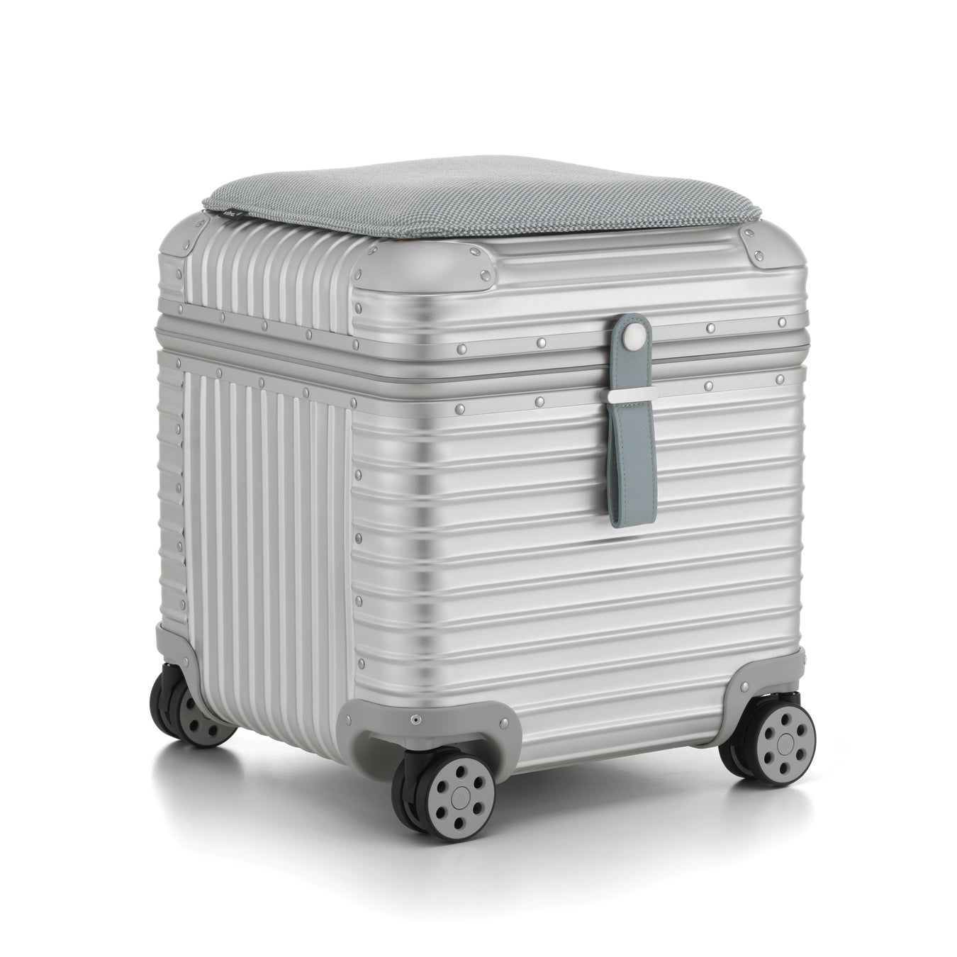 アルミニウムスツールは、リモワのアイコニックな素材、グルーヴ入りアルミニウムを用いたモバイルキューブで、ホイールにはリモワの「マルチホイールシステム」が採用されています。内部はヴィトラのファブリックが用いられており、日用品を収納することが可能です。内部には取り外し可能なレザーディバイダー(仕切り)が備わり、内容物をすっきりと整理することができます。また、蓋に装着し外すことができるクッションシートは、快適な座り心地を提供いたします。