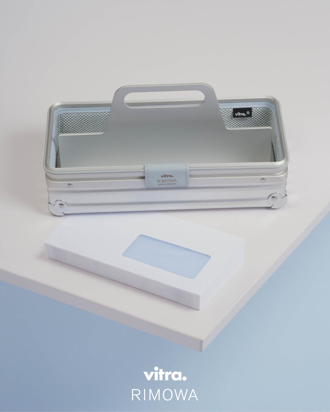 また、アルミニウムツールボックスは、2010年にArik Levyがデザインしたヴィトラ「ツールボックス」にインスパイアされたアイテムで、従来のリサイクルプラスチック素材ではなくリモワのアルマイト加工されたアルミニウム素材が用いられています。また、内部にはリサイクル素材のファブリックを使用するというサステナブルなアプローチが採用されています。