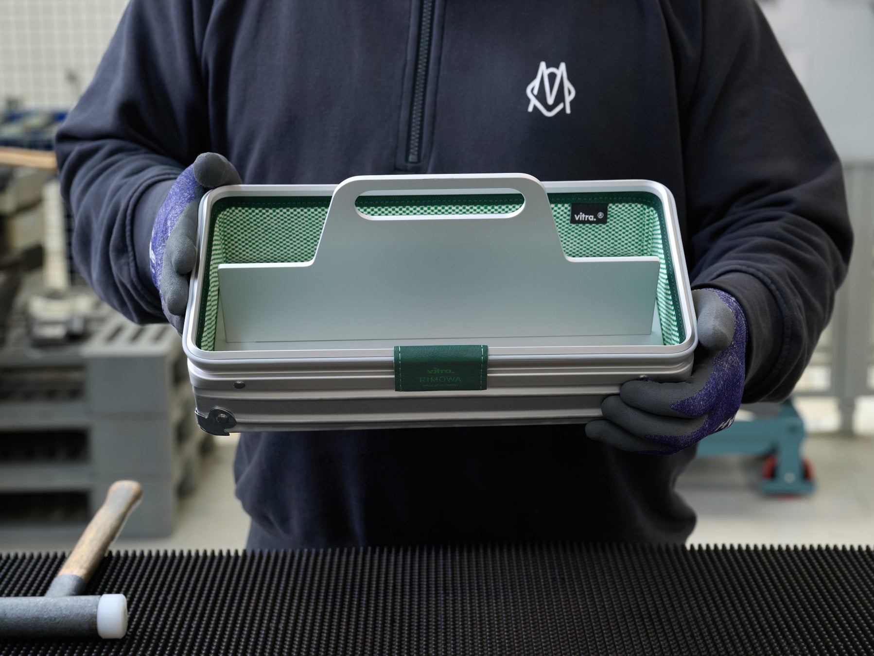 これらのコラボレーションアイテムは、リモワとヴィトラの両工場での共同制作により生み出されます。アルミニウム製のパーツはリモワのケルン工場で、テキスタイル部分の加工はヴァイル・アム・ラインにあるVitra Campus で丁寧に作り上げられています。