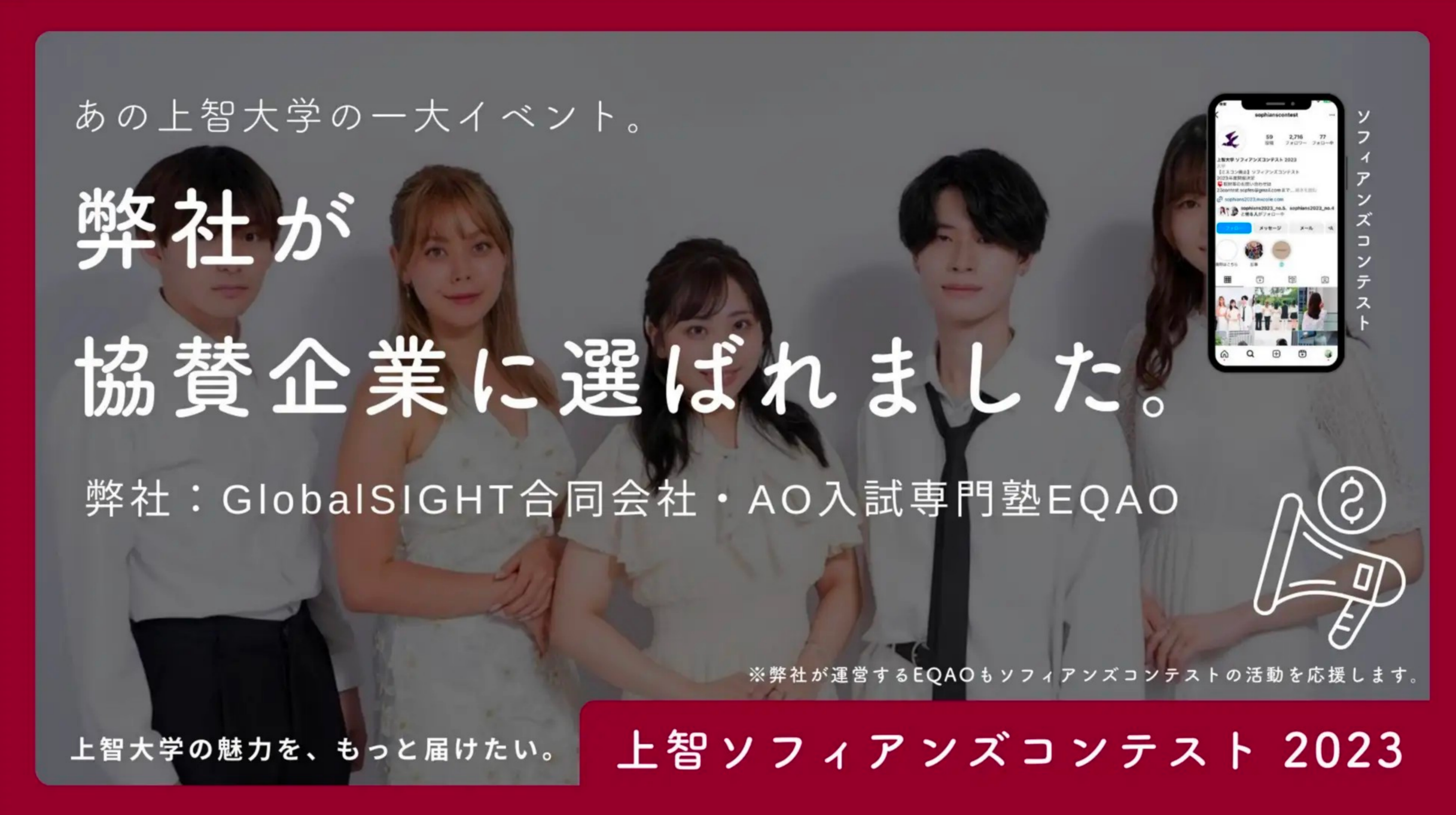 上智大学公募推薦専門塾EQAOは、上智大学文化祭ソフィアンズコンテスト協賛起業です。