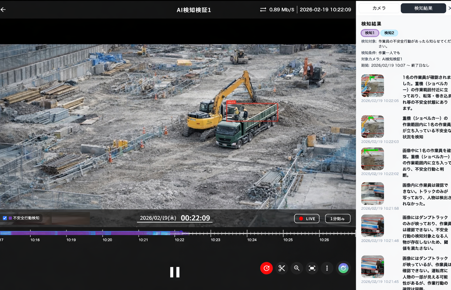 建設・製造・インフラなどの作業現場では、安全管理や状況把握のためにカメラ映像が広く活用されています。しかし、すべての映像を人の目で確認し続けることは難しく、危険な状況の見逃しが事故やトラブルにつながる可能性があります。