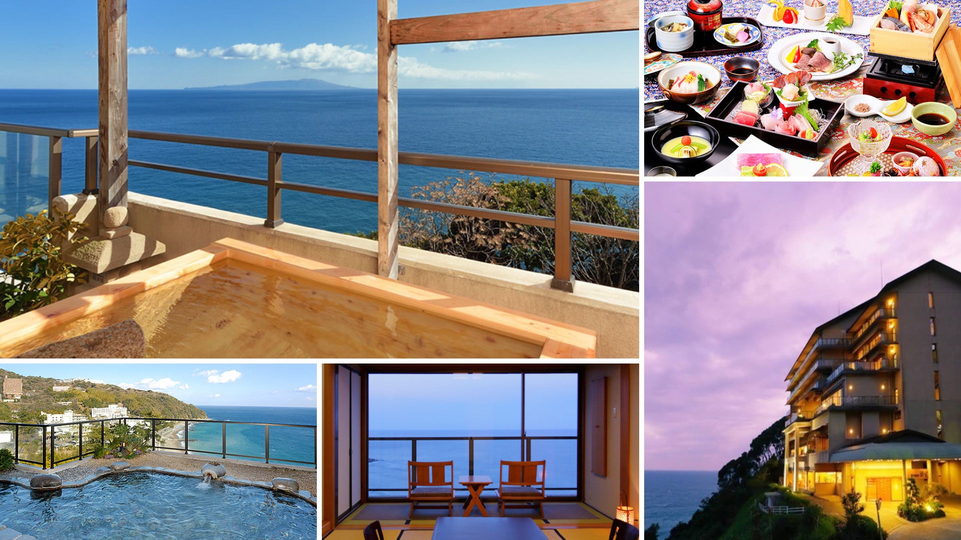 伊豆半島東部の温泉街・熱川に位置する粋光は、海抜75メートルの高台から相模湾を一望することができる熱川でも屈指のロケーションを誇る温泉宿です。全24室の客室は全てオーシャンビューとなっており、お部屋からは広大な伊豆の海のパノラマをお愉しみいただけます。客室は、広縁付きの和室、使いやすい和洋室タイプやコネクティングルーム、そして潮騒を聴きながら源泉かけ流しの湯に浸かる贅沢を味わえる露天風呂付きの特別室など、多彩な客室タイプをご利用シーンに合わせてお選びいただけます。