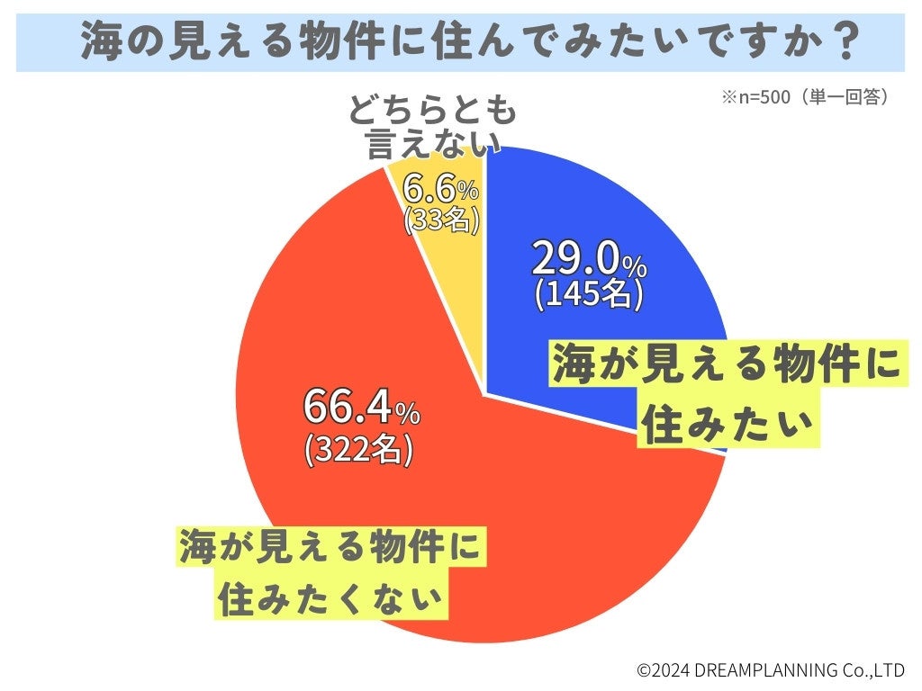 まずは、海の見える物件に住みたいか確認したところ、2/3近くの方が住みたくないという結果でした。