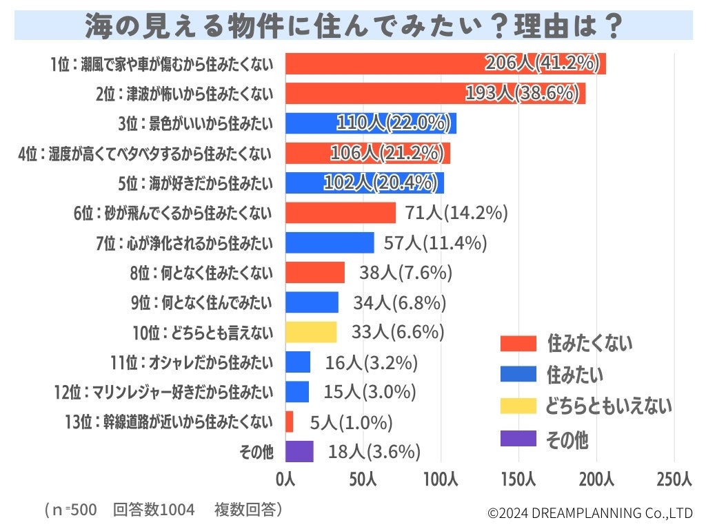 ★ 1位:潮風で家や車が傷むから住みたくない 206名(41.2%) ★