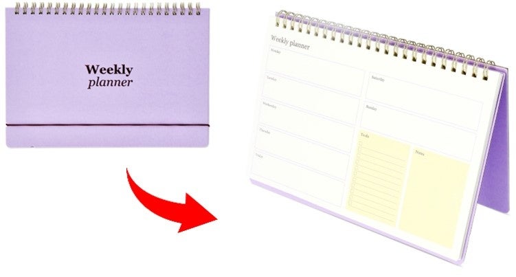 立てて使えて、付箋にもなります。1週間のスケジュールをサッとメモ感覚で記入して。