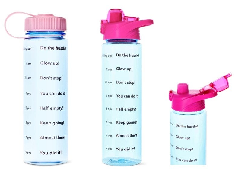 ”You can do it!”飲むだけでモチベーションアップするボトル。容量も1ℓたっぷり入ります。左は広口タイプ、右は口が狭いタイプ。