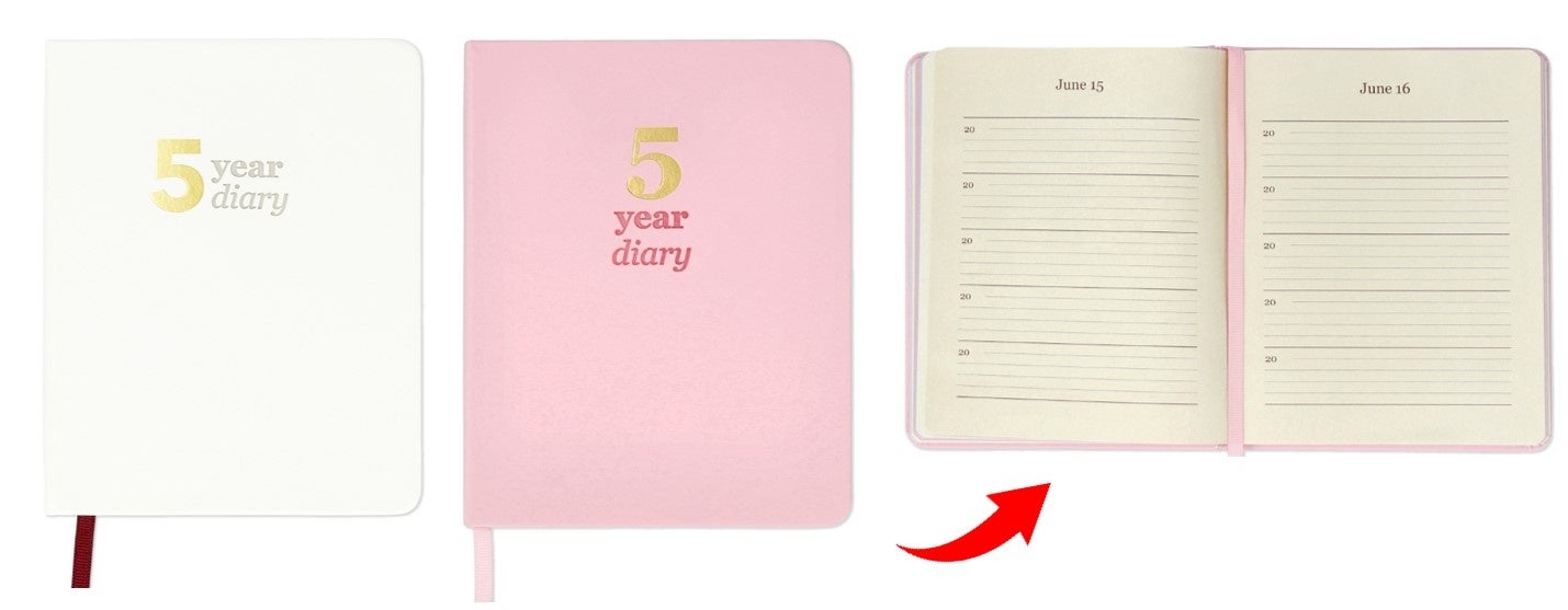 毎年大人気の5年日記がホワイト&ピンクカラーの2種類になって再登場!毎日を短く、5年間分の出来事を記録できます。日記、成長記録など使い方は様々。あなたならどんな日記にする?