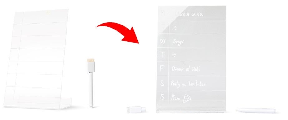 透明すぎてなんだかわからないって?それが狙いです。生活に溶け込む予定表ボード。付属のペンもホワイトです。