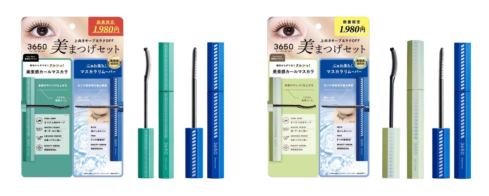 この度発売する〈3650 美まつげセット〉は、“オンしてくるん” 束感カールをキープする人気商品「3650 マスカラ WPコーム」と、”オフしてもピンッ!” 美容液成分配合で、こすらず、じゅわっとオフしながらまつげのハリ・コシケアを叶える「3650 マスカラリムーバー」がセットになった商品です。メイクしている時も、すっぴんの自まつげも、どちらも健やかで美しい“美まつげ”へと導く本商品を、ぜひお試しください。