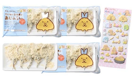 「すみっコぐらし」とのコラボ品は、人気キャラクター「あじふらいのしっぽ」をデザイン。背びれのカットや、鱗の除去、衣をつける作業まで、手作業による丁寧な仕事を行うことで、ワンランク上のクオリティを実現しています。