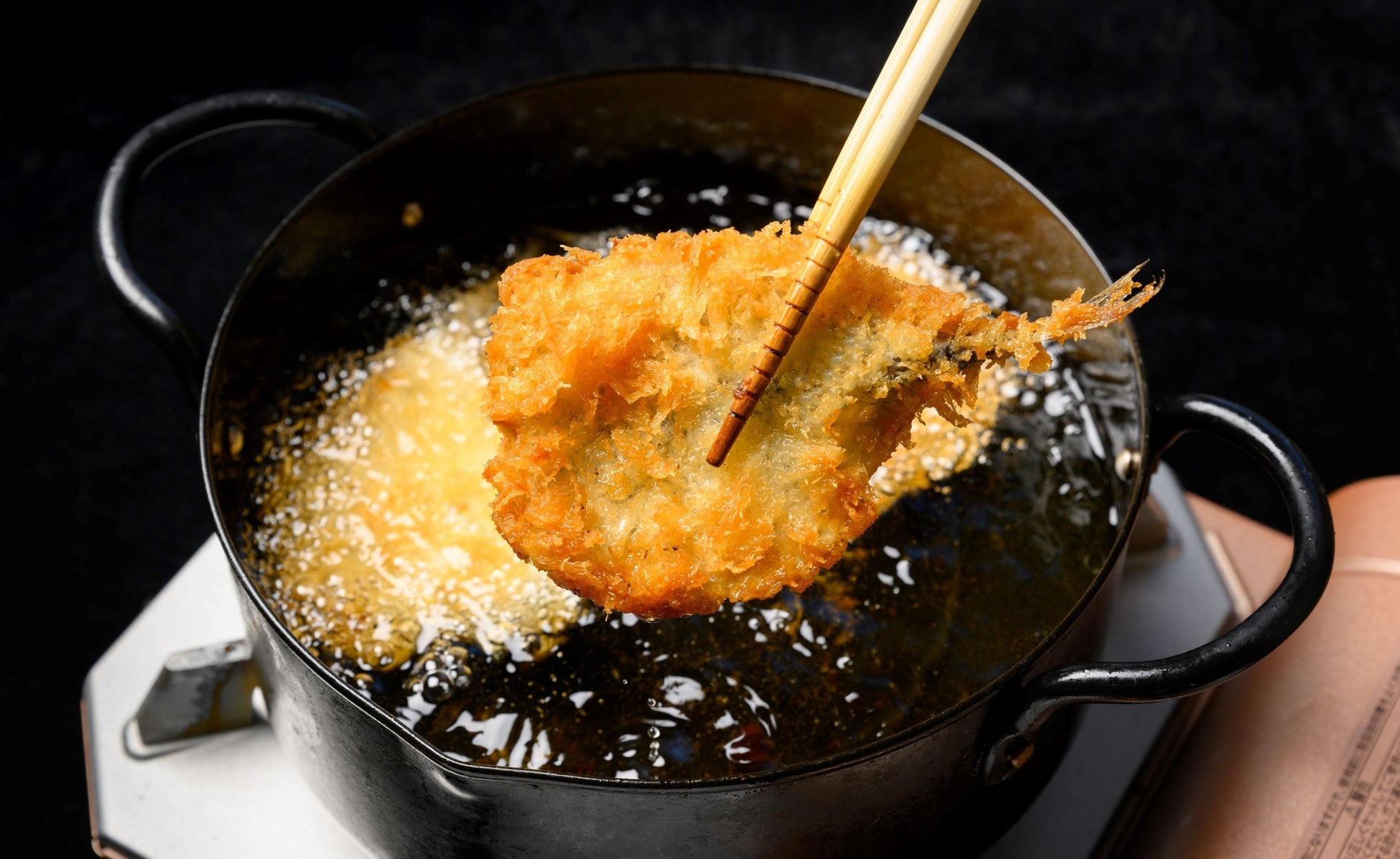 モットーは「衣でごまかさない」。衣が占める割合を少なくし、アジ本来の美味しさを際立たせています。特注の国産生パン粉は、粗目で剣立ちが良く、冷めても美味しさが保たれるよう設計。パン粉の大きさも1ミリ単位で調整し、現在のカタチにたどり着きました。味付けも塩と胡椒のみ。食品添加物でのごまかしは一切なしです。