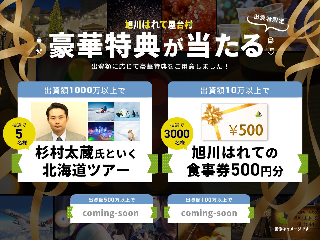 旭川はれて屋台村へ応援投資いただいた方に抽選で豪華特典が当たるチャンス!