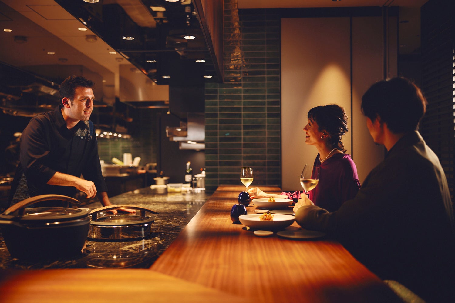Gallery 11の中でもひときわ目を惹くオープンキッチン「OMAKASE COUNTER」でのシェフたちによる臨場感あふれるライブパフォーマンスを目の前に、メゾン マムのアンバサダーを務めるジェローム・スイシ氏が、シャンパーニュと料理のマリアージュの魅力を語る特別なひとときをご用意。料理には旬の食材を使用し、各シャンパーニュの個性を引き立たせる唯一無二のペアリングをお愉しみいただけます。それぞれのシャンパーニュの特徴をシェフが五感で捉え日本の食材でクリエイトしたイタリア料理との見事な交錯を、存分にご堪能ください。