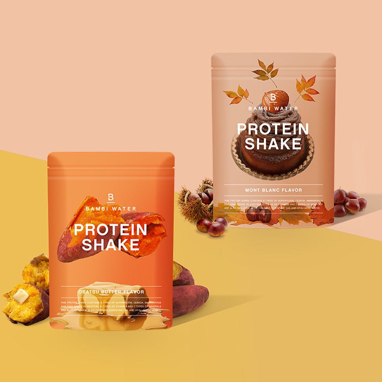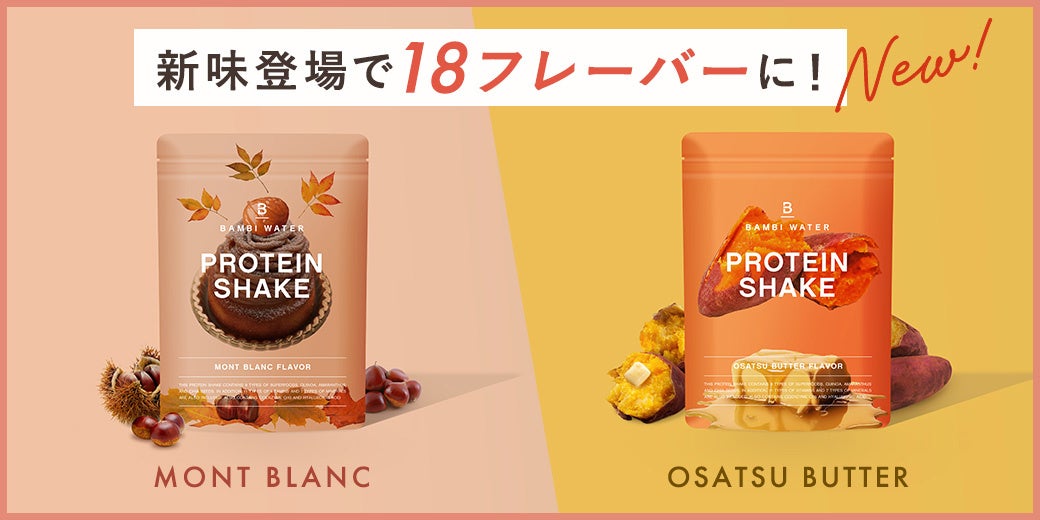楽天ランキング12冠達成*1!大人気美容プロテイン『BAMBI WATER プロテインシェイク』に秋季限定フレーバー「モンブラン」と「おさつバター」が新登場!