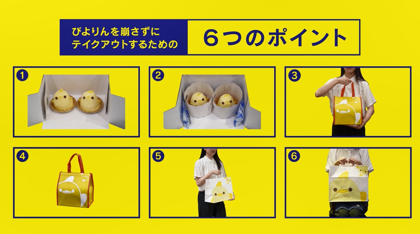 動画では、実験結果と日立製作所研究員の方からのアドバイスをもとに、「ぴよりん」を崩さずにテイクアウトするためのポイントを紹介しています。