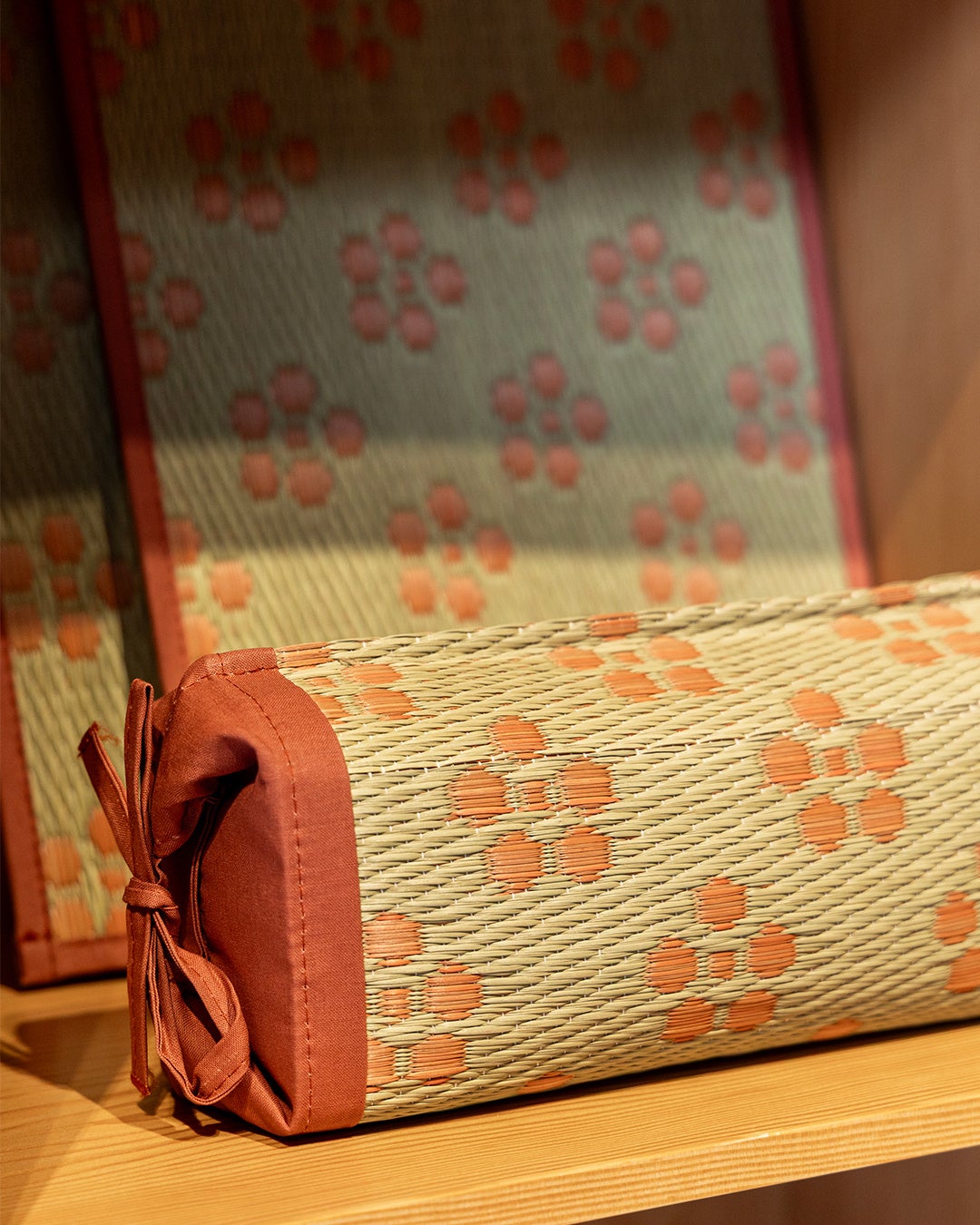 今回「ビームス ジャパン 太宰府店」で紹介されているのは、福岡の伝統工芸品である福岡花ござを使用したイケヒコオリジナルの雑貨シリーズ。花ござ特有の美しい織り柄と自然素材ならではの風合いを活かし、日常の中で気軽に楽しめるローカルプロダクトとして提案しています。