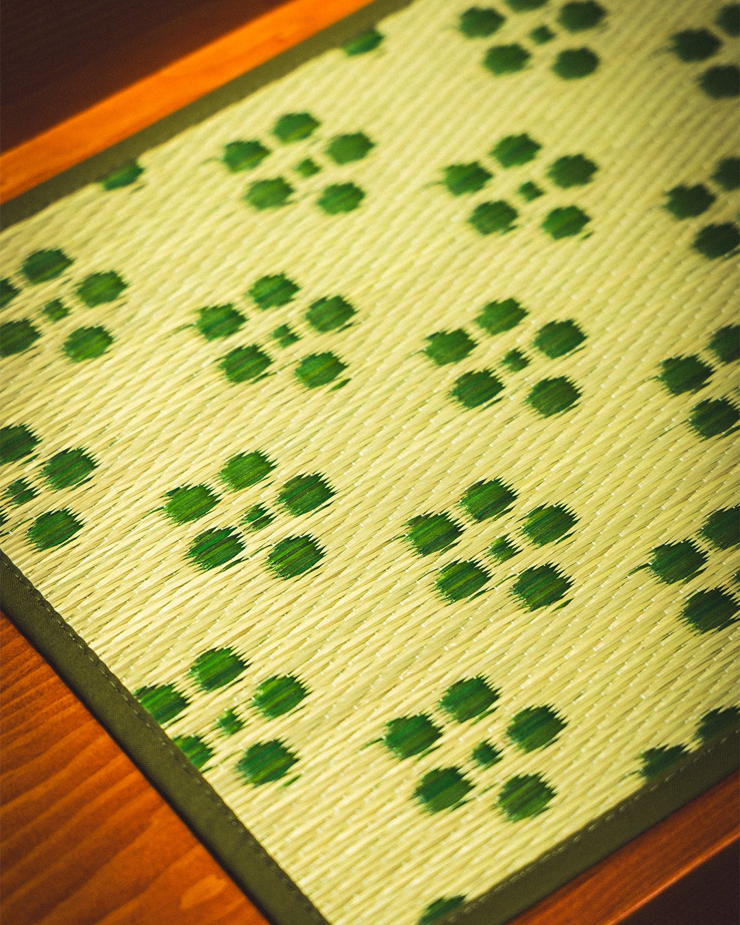 また、店舗内の一部内装には、福岡県知事指定特産工芸品・民芸品に認定されている『掛川織のい草暖簾』を採用していただきました。伝統技法ならではの立体的な織りと陰影が、店内空間に温かみと奥行きを生み、太宰府店の空間にやわらかな表情を添えています。