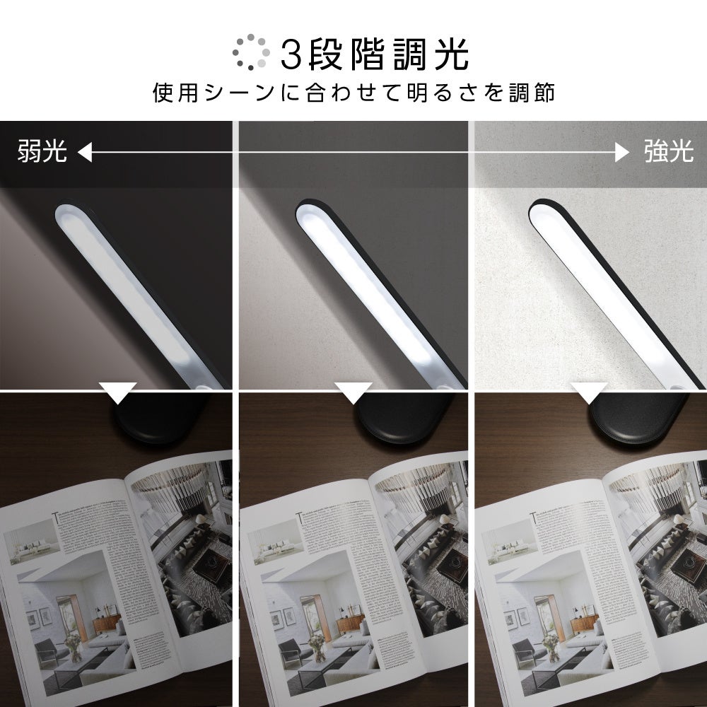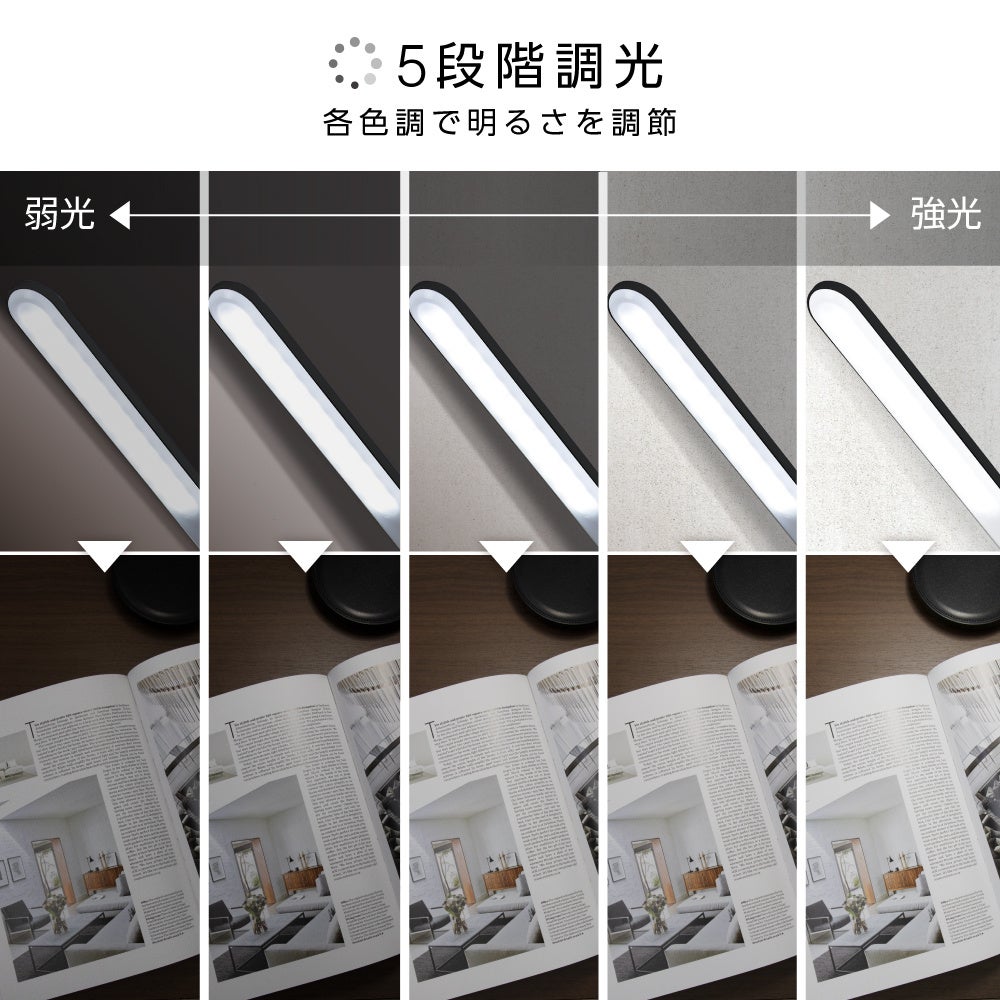 シーンに応じて明るさを調整でき、電源はUSB対応で自由度も高く、初めてのデスクライトにもおすすめです。