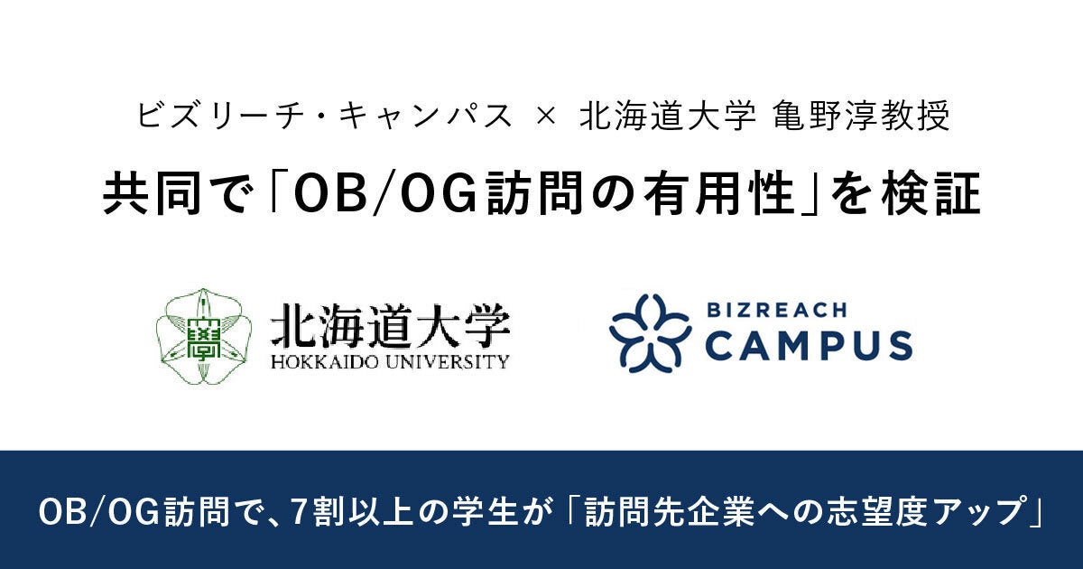 ビズリーチ・キャンパス、北海道大学 亀野淳教授と共同で「OB/OG訪問の有用性」を検証。OB/OG訪問が「訪問先企業への志望度アップ」に有効、地域間の情報格差の是正にも寄与