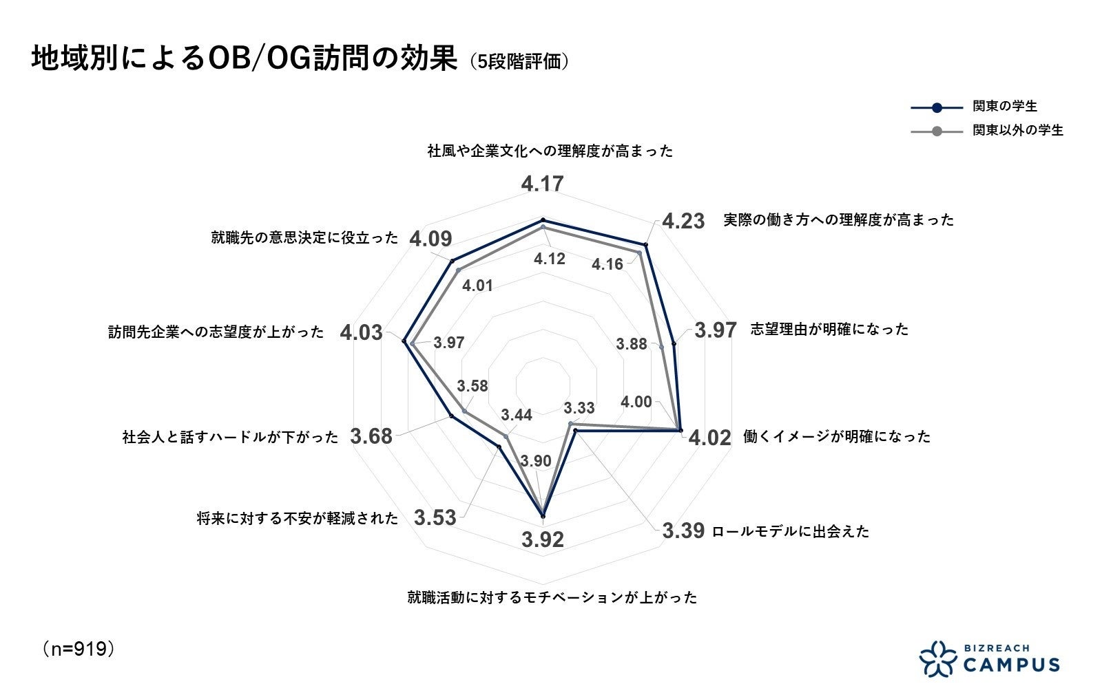 また、地方圏の大学生にとってはリアルな情報入手において不利な面があると想定されましたが、OB/OGとの接触によりその課題を軽減できることが明らかになりました。企業にとっても地方圏の優秀な人材を確保する手段としてOB/OG訪問の一層の活用が期待されます。