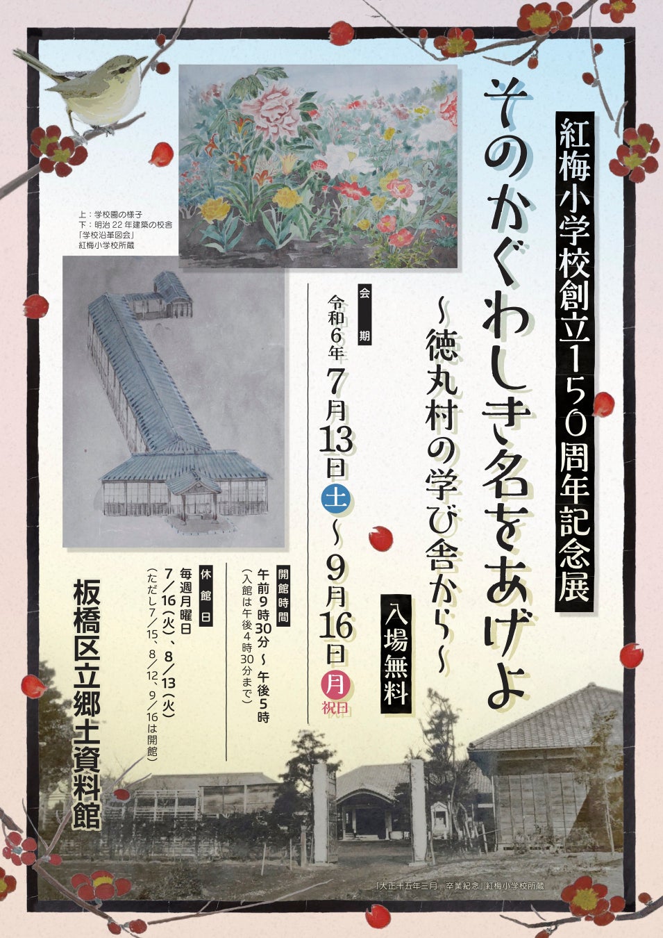 紅梅小学校創立150周年記念展「そのかぐわしき名をあげよ~徳丸村の学び舎から~」 |