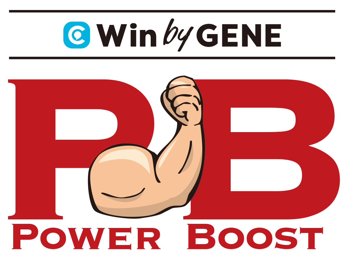 「Win by GENE」によって、パワーリフティングに必要な“POWER”を高め続けることを込めたロゴです。