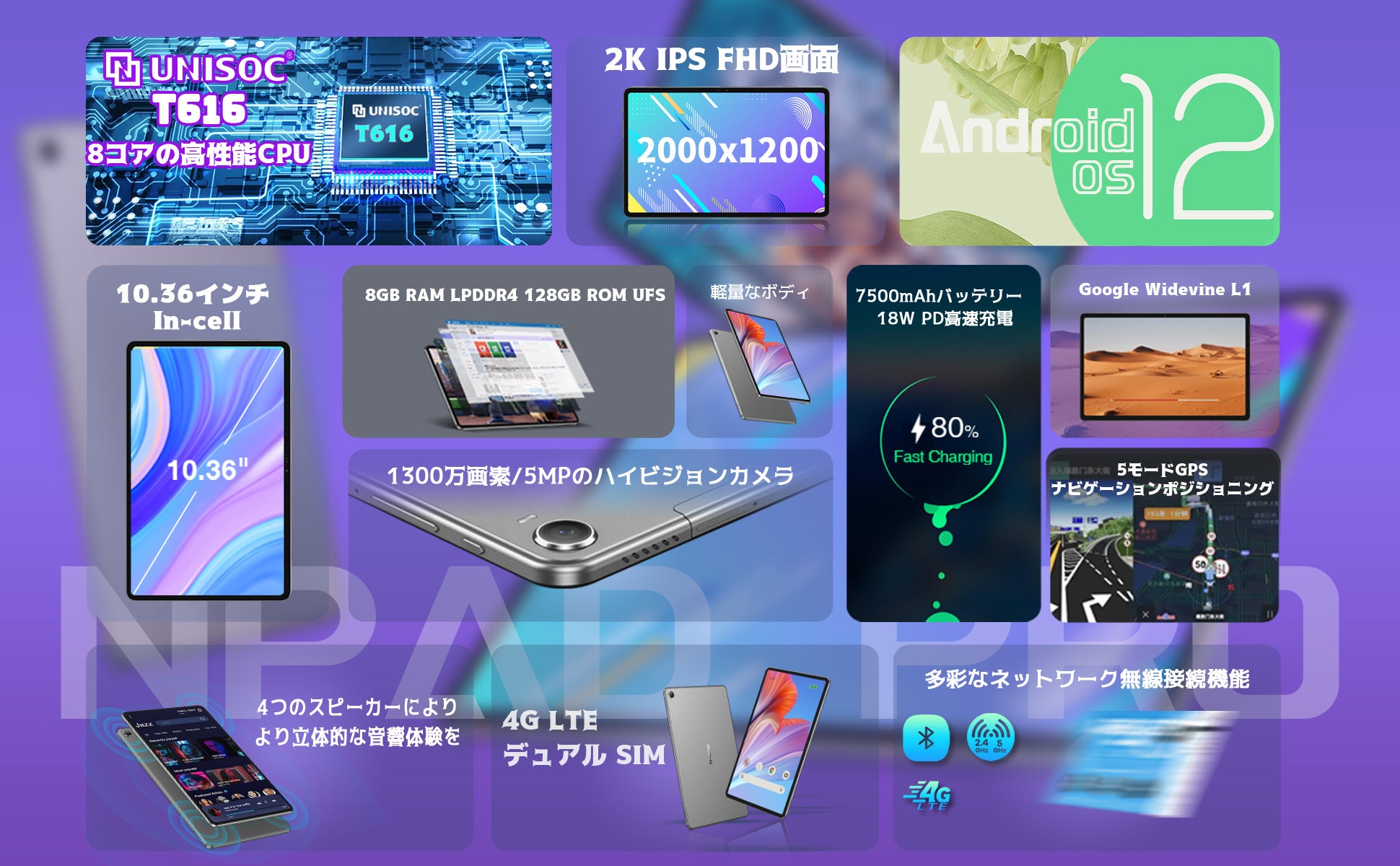 NPAD タブレット鮮やかなディスプレイで、まるで現実のような臨場感をお楽しみいただけます。さらに、高速プロセッサーと大容量のメモリで、あらゆるタスクをスムーズにこなせます。ゲーム、映画、仕事、学習...この一台で全て解決します!